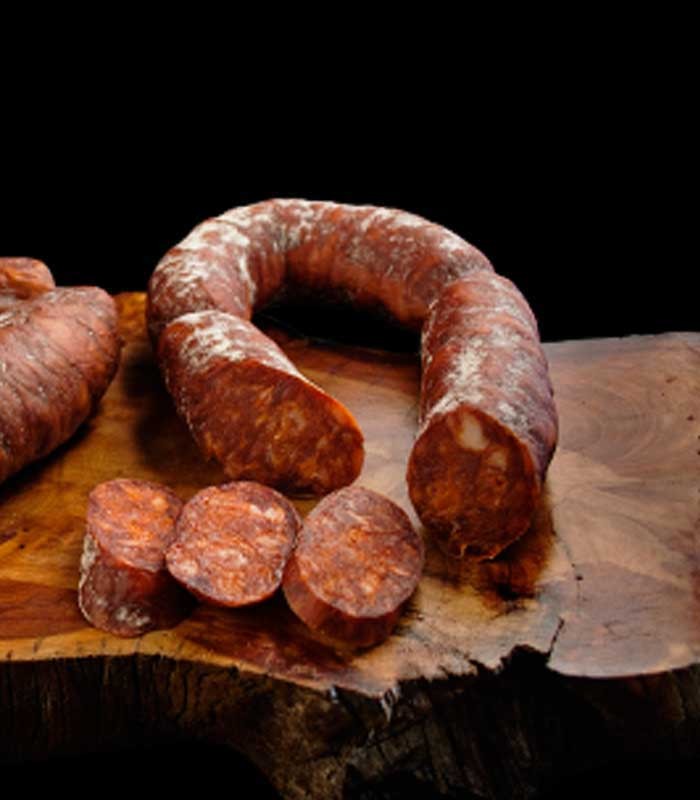 Ideal para su consumo en barbacoas, al natural y cocidas al vino o a la sidra. Para su elaboración utilizamos carnes de bellota escogidas y seleccionadas, bien magras (sin grasa), adobadas con pimentón, ajo, orégano y especias. Embutidos en tripa natural de cerdo, curados a la antigua usanza y atados a mano.